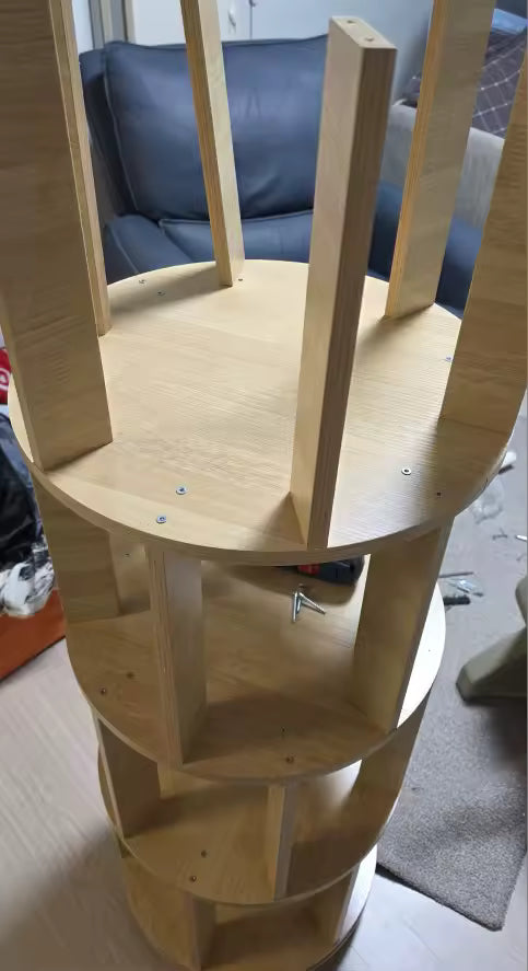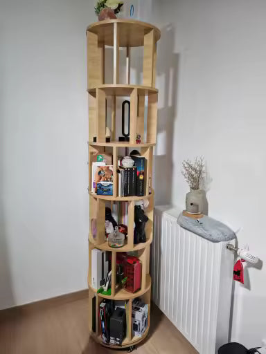 Magnifique bibliothèque rotative, le bois massif et la couleur beige apportent beaucoup de chaleur à mon salon.