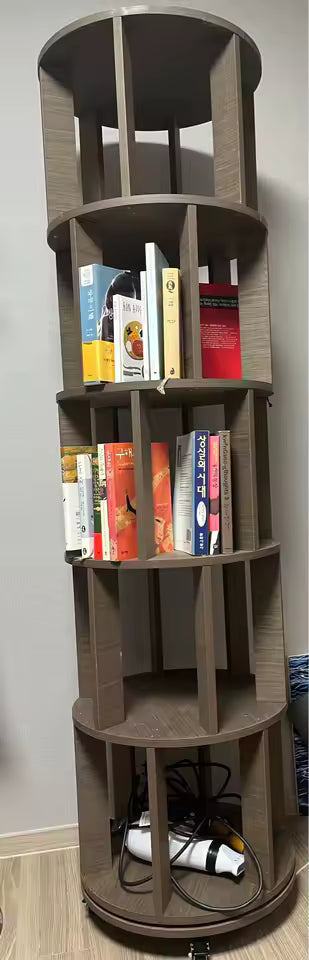 Très pratique avec la rotation 360° et les roulettes, je trouve mes livres en un instant et le montage a été simple.