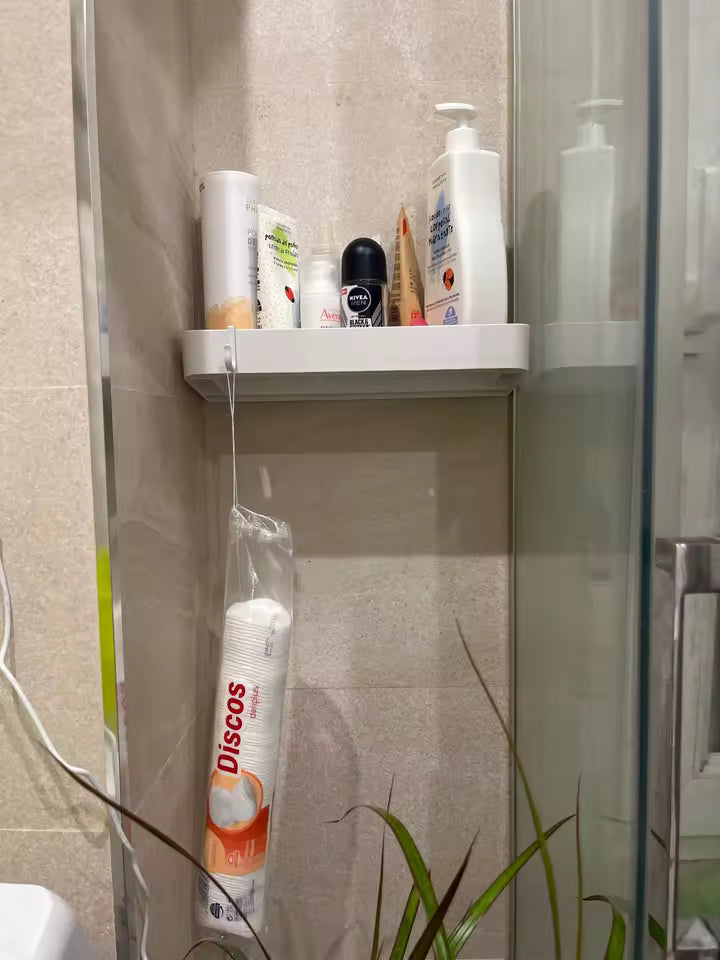 Pratique au quotidien, cette étagère adhésive simplifie l’organisation autour de la douche ou du lavabo.